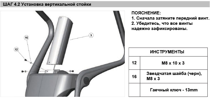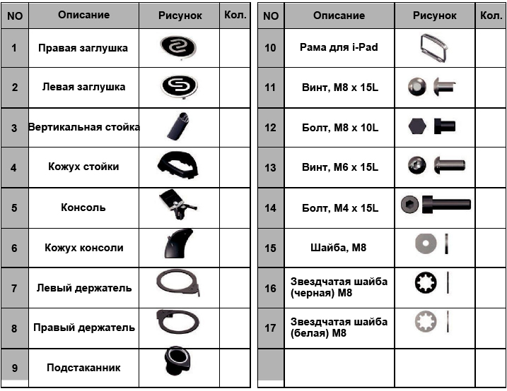 Для начала следует открыть коробку и удалить весь картон вместе с пенопластом. Перед тем, как будете собирать тренажер, проверьте наличие всех необходимых деталей по предоставленному Вам списку. Не забудьте подготовить шестигранник на 6 mm для сборки.
