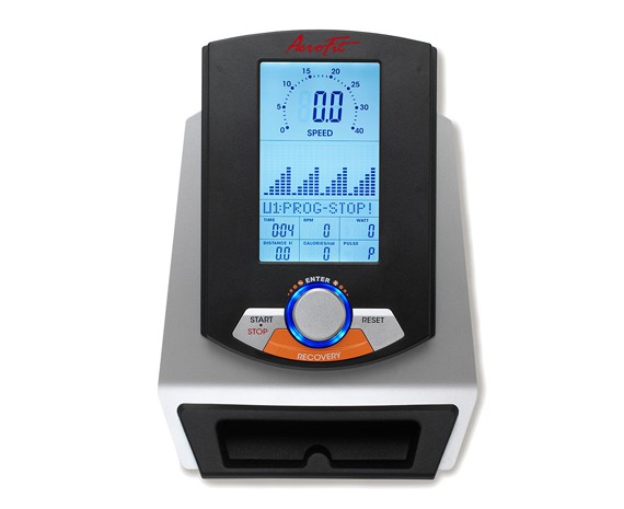 Элегантный жидкокристаллический дисплей выигрышно подчеркивает креативный дизайн оборудования. На экране монитора отображаются показатели пройденной дистанции, времени, скорости, а также имеется информация о состоянии пульса пользователя. Наряду с этим компьютер производит расход калорий и выводит данные на дисплей.