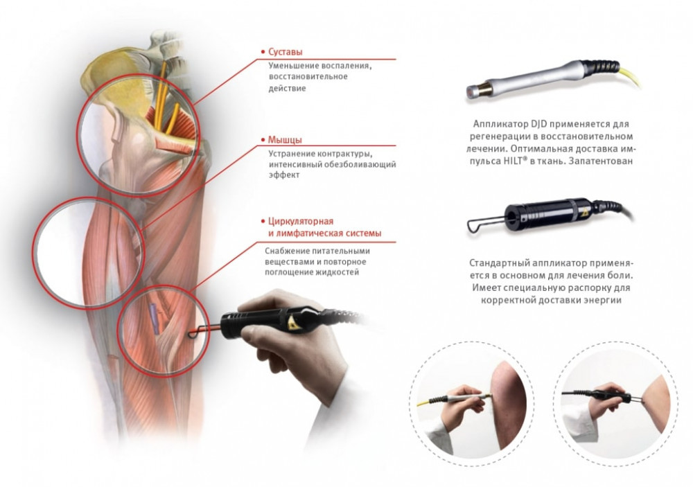 Контролируемым и безопасным способом повышает температуру и давление. Усиливается эффект полезной циркуляции, что приводит к усилению стимулирующего эффекта и усвоению кислорода и питательных веществ поврежденными структурами. Таким образом, создаются оптимальные условия для лечения патологии в более короткие сроки.