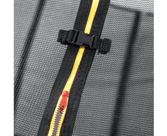 - Для защиты детей от пользования батутом без присмотра взрослых вход/выход, расположенный в сетке, закрывается с внешней стороны на молнию. Для безопасности она дополнительно фиксируется защелками.