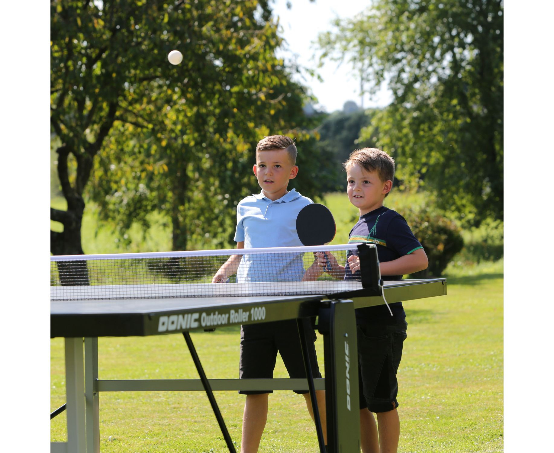 - Теннисный стол Outdoor Roller 1000 бренда Donic с сертификатом безопасности EN 14468.