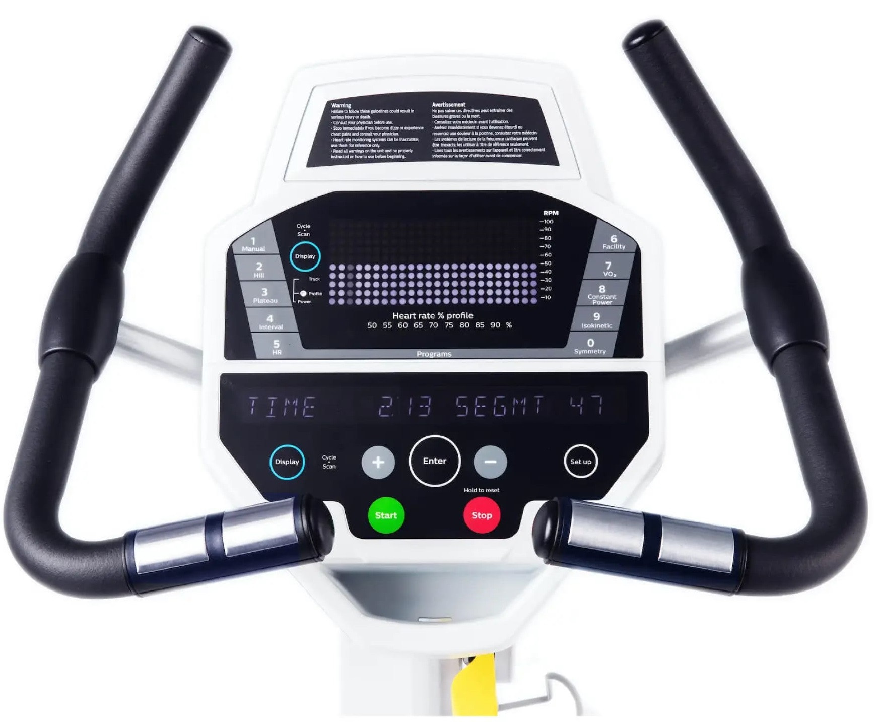 Для дополнительной безопасности пользователя под дисплеем расположен рычаг ручного тормоза. Также предусмотрены доступ к загрузке отчетов о тренировке и возможность скачивания данных.