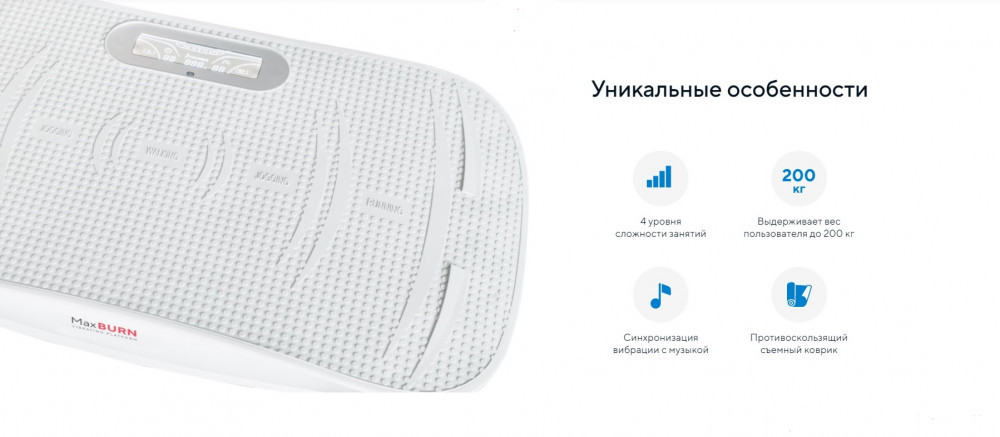 Все самые важные функции собраны в одной виброплатформе Max Burn Pro: