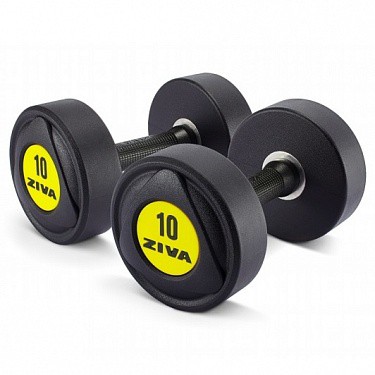 Классические цельнолитые гантели – это гантели, имеющие форму двух шаров, которые соединены посередине рукояткой для возможности захвата их рукой. На рынке фитнес-оборудования наиболее часто можно найти цельнолитые гантели в форме шестигранных призм, которые соединены между собой ручкой, и часто обрезинены. Как утверждают специалисты, подобная форма позволяет ставить тяжелую гантель торцом на переднюю поверхность бедра во время подготовительной фазы таких упражнений, как «жимы с гантелями на горизонтальной скамье». Шестигранная форма не позволяет гантели раскатываться по полу.