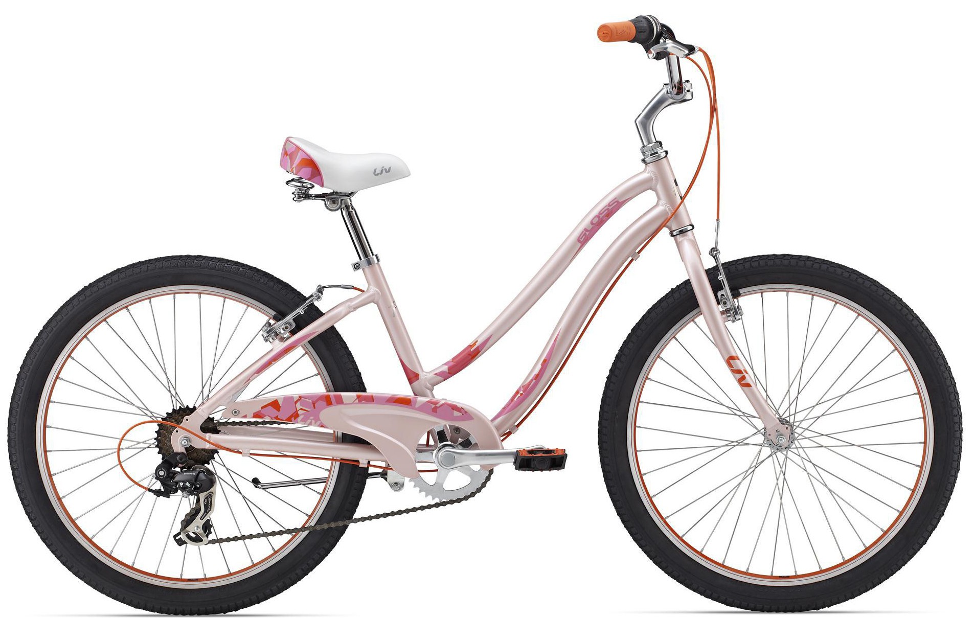 Шикарный велосипед для девочек Gloss 2 фирмы Giant - это круизер начального уровня, предназначенный для детей в возрасте 9-11 лет. Модель прекрасно подходит для катания по парковым дорожкам и лесным тропинкам. Верхняя труба рамы слегка занижена, что существенно облегчает посадку. Яркий оригинальный велосипед оснащен надежными тормозами типа V-brake, при помощи которых можно мгновенно остановить байк, независимо от погодных условий. Такой быстрый комфортный велосипед с удобным мягким сиденьем позволит окунуться в мир сказочных прогулок.
