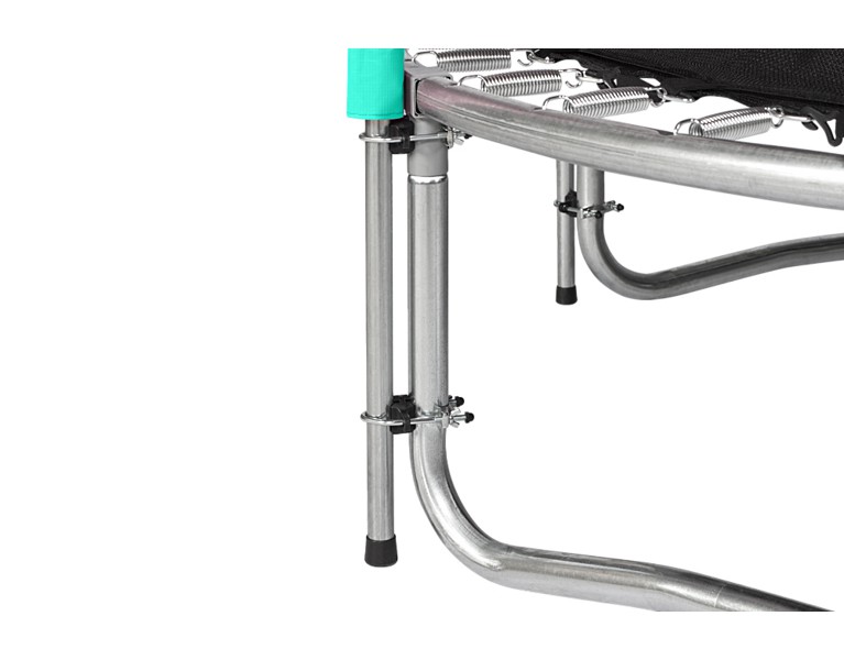 Металлоконструкция батута отличается отличным показателем надежности и прочности, для более продолжительной эксплуатации рама и стойки сверху покрываются специальным антикоррозионным составом. Полотно для прыжков производится из эластичного материала Permatron, который выпускает американский производитель. Для этого материала характерна высокая прочность, устойчивость к интенсивному солнечному излучению, температурным перепадам, воздействию воды, на нем не развивается плесень.