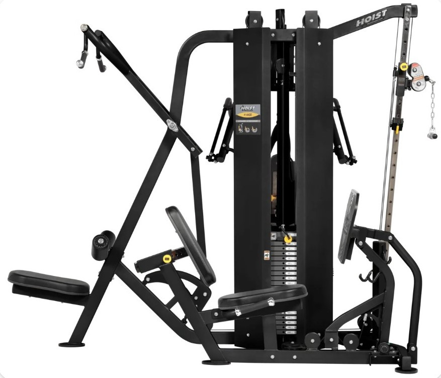 Тренажер HOIST H-4400B-MB принадлежит к линейке HPL (Hoist Premier Line) Multi-Stack Gyms. Это серия премиальных многофункциональных станций, предназначенная для частного использования и малых коммерческих объектов (отели, жилые комплексы).