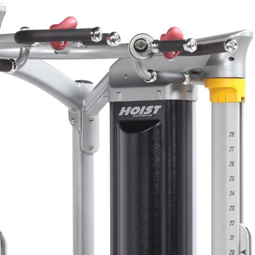 Комплекс HOIST Mi7 отличается современным дизайном, призванным закрыть основные механические элементы и сберечь их от загрязнений. Благодаря широкой открытой конструкции имеется возможность выполнения различных упражнений на скамье, полностью используя возможности комплекса. Продуманная конструкция рукоятей позволяет использовать разные хваты для подтягиваний, давая возможность развивать различные мышцы рук. Упор-подушка может регулироваться для более удобного положения, а запатентованная технология колонн для тяги помогает настраивать их одной рукой, вращая на 360⁰. Имеется возможность тренировки обеих сторон тела одновременно или в независимом режиме, такую возможность обеспечивают колонны с 28 вариантами положений. Весовой стек выполнен по запатентованной системе, дарящей малое трение между плитами и постепенное, практически бесшумное движение. Система передачи нагрузки позволяет использовать амплитуду движения тросов по максимуму, получая 50% сопротивления.
