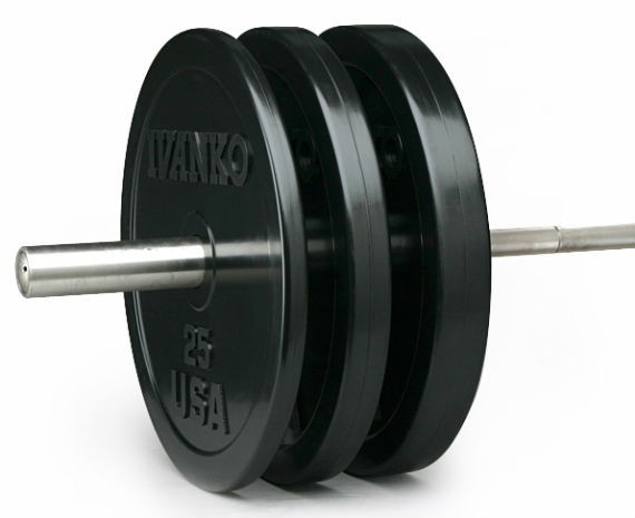 - Бампированный обрезиненный диск OBP-10KG бренда Ivanko подходит для олимпийского грифа с диаметром посадочной втулки 50 мм.