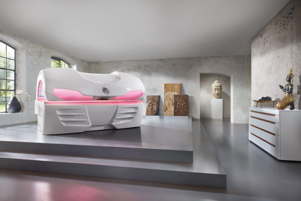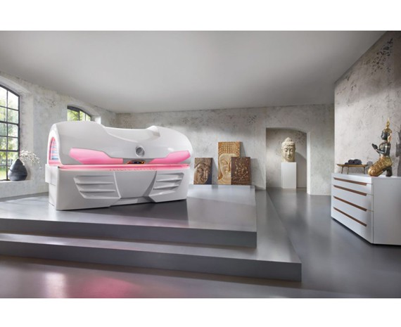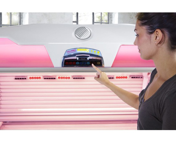На этом оборудовании установлены 22 красные лампы уникальной разработки производителя, которые воздействует красным спектром излучения на кожу, омолаживая и улучшая ее внешний вид. Кроме того, благодаря установке 22 УФ-ламп достигается эффект легкого загара.