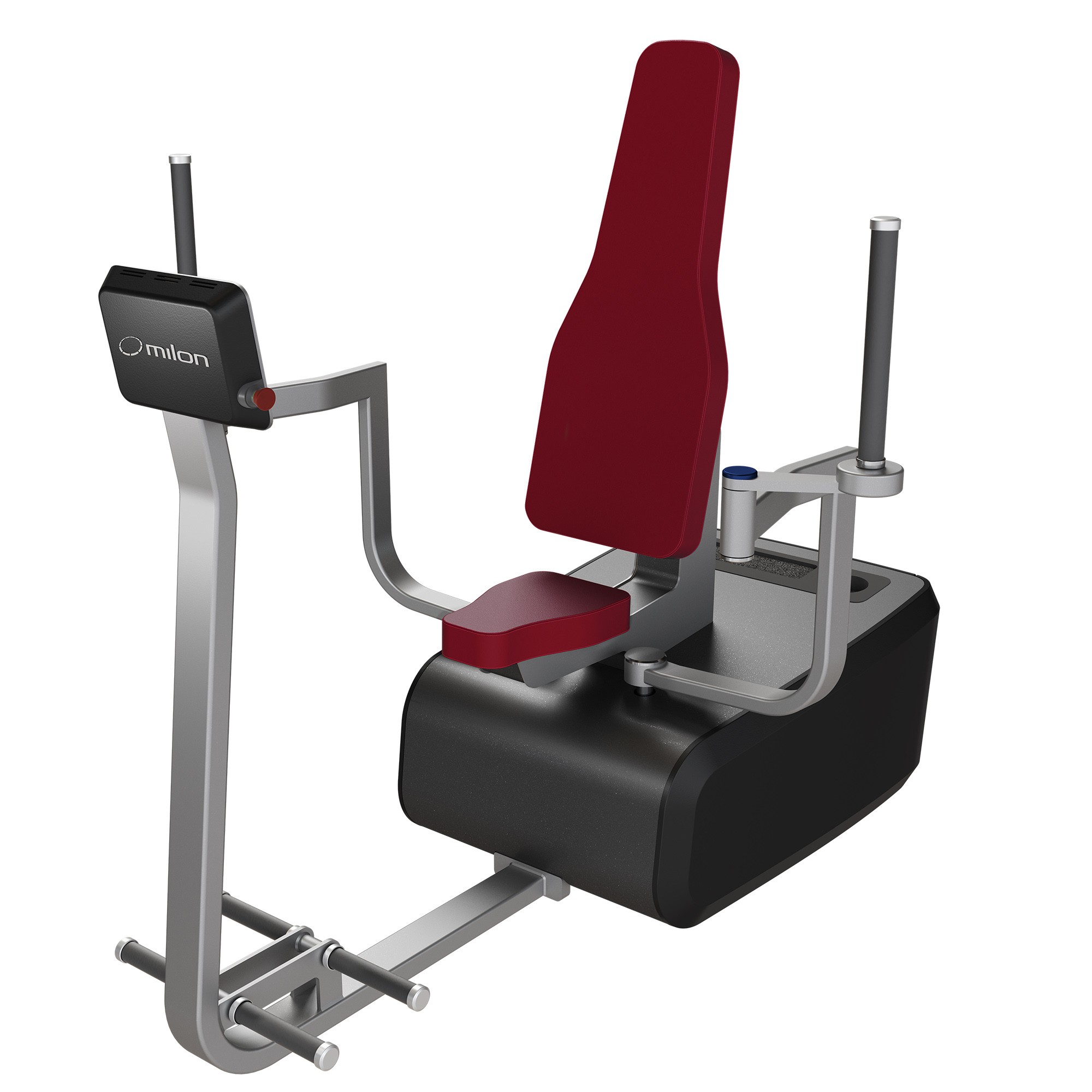 - Высота сиденья в силовом тренажере Butterfly Reverse 20016248 производителя Milon оптимизирована для пожилых людей и пользователей и пользователей с патологией тазобедренного сустава.