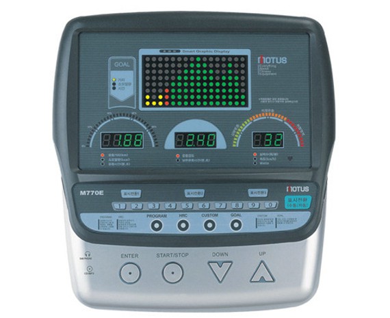 Эллипсоид M770E фирмы Motus имеет автономный источник питания, мощность которого обеспечивает высокую интенсивность тренировок. Он снабжен десятью встроенными программами, которые позволяют выбирать уровень сложности тренировки. Кроме того, обеспечена возможность самостоятельно настроить дополнительные пять программ. Все тренировочные параметры, такие как пройденная дистанция, интенсивность тренировки, скорость, пройденное и оставшееся время, затраченные калории, пульс, отражаются на мониторе. К дополнительным функциям можно отнести подставку для книги, транспортировочные ролики, фиксированную и передвижную рукоятки.