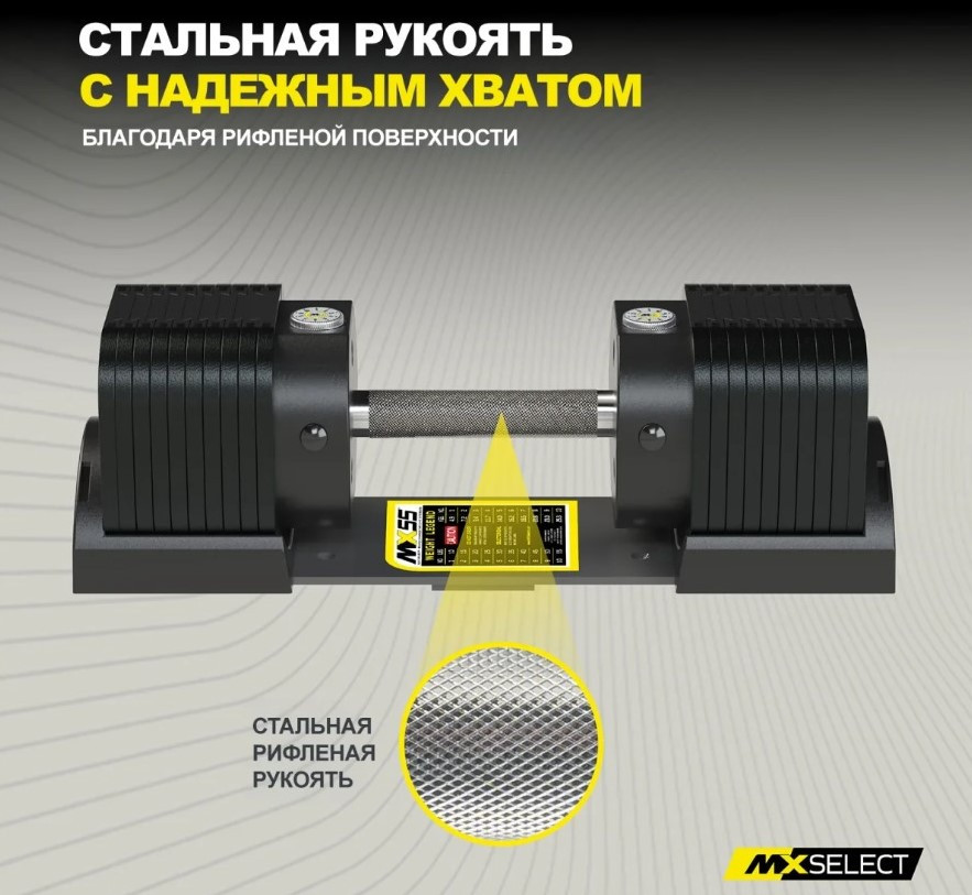 MX Select MX55 EVO — это инженерное решение для тех, кто транслирует бескомпромиссный подход к качеству фитнес-оборудования. Система разработана как полноценная альтернатива профессиональному гантельному ряду, оптимизированная для эксплуатации в домашних залах и велнес-зонах. Гантели с рифленой стальной рукоятью.
