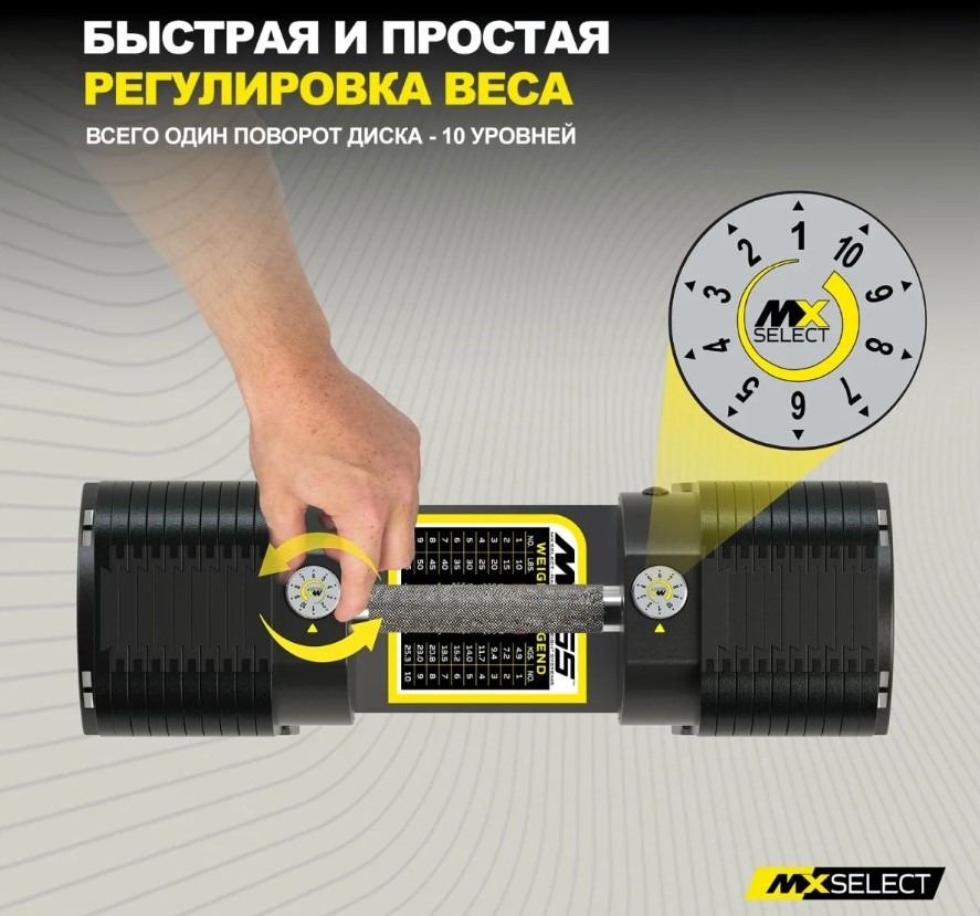 Регулируемые гантели MX Select MX55 EVO: Профессиональный стандарт в приватном пространстве