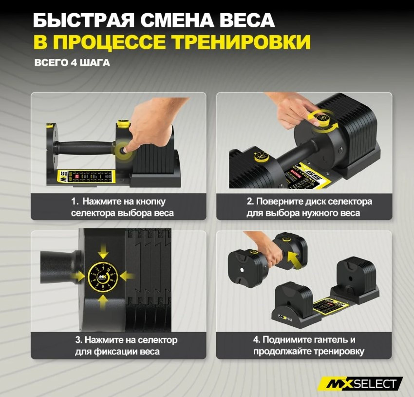 Пара регулируемых гантелей MX Select MX55 EVO: Профессиональный стандарт в приватном пространстве