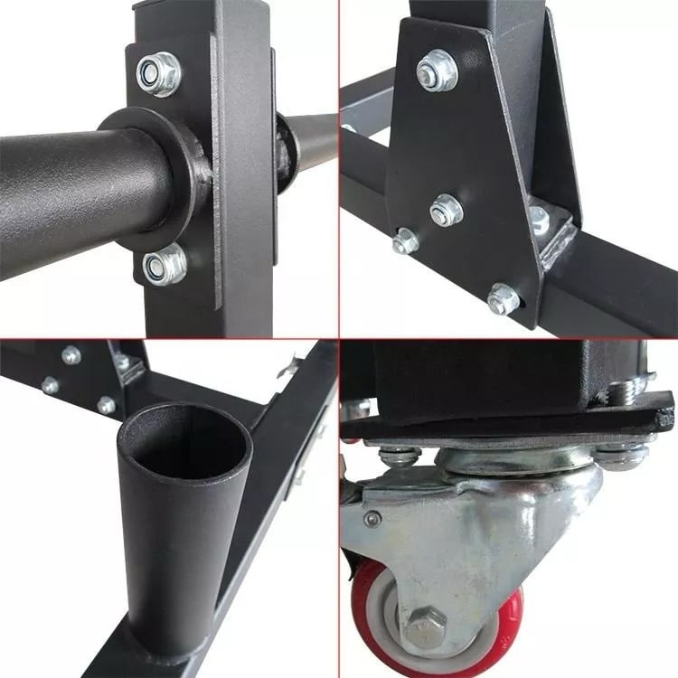 Стойка оснащена колесами, что позволяет легко передвигать ее в любое желаемое место. Это обеспечивает удобство при перемещении стойки в тренажерном зале или для очистки.