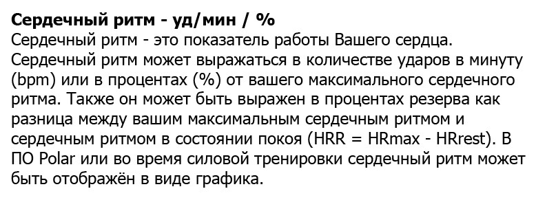 - Сердечный ритм - уд/мин / %.