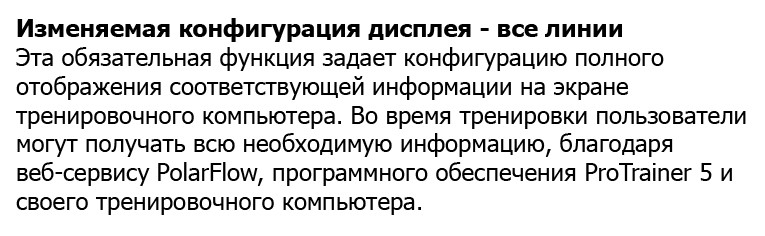 - PolarOwnZone® – персональная целевая зона сердечного ритма.