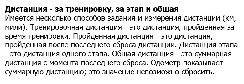 - Дистанция - за тренировку, за этап и общая.
