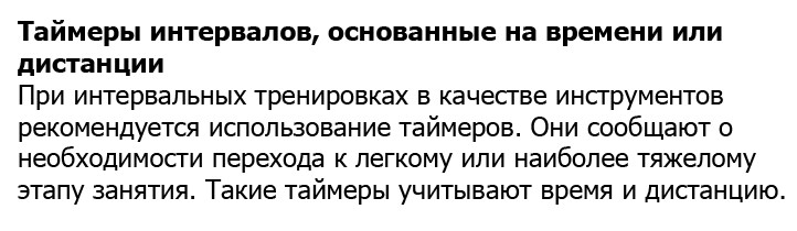 - Таймеры интервалов, основанные на времени или дистанции.