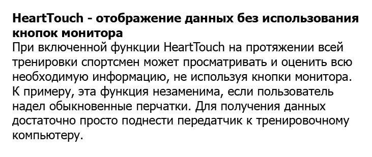 - HeartTouch - отображение данных без использования кнопок монитора.
