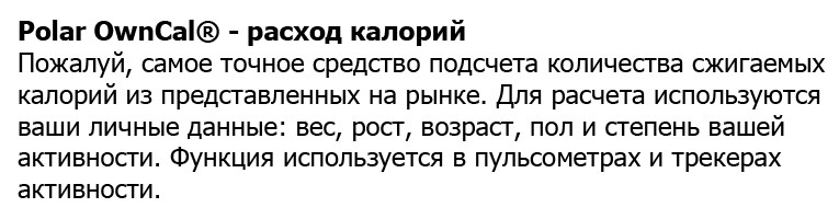 - PolarOwnCal® - расход калорий.