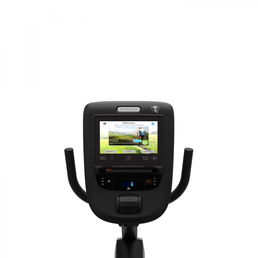 - В консоли вертикального велотренажера Upright Bike UBK 685 бренда Precor предусмотрены интегрированные опции развлекательных средств, которые включают персональный видеоэкран, блок показаний , разъем для зарядки мобильных устройств, видео-разъемы для медиа адаптера, декодирование видеосигналов, встроенный тюнер с системами NTSC, ATSC, PAL, SECAM, DVB-T/T2/C для глобальной теле- и медиа- поддержки.