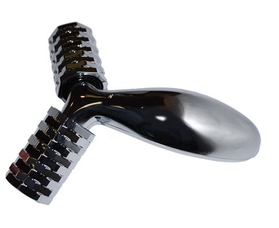- Для наилучшего захвата кожи с прилегающими мышцами массажер имеет Y-образную форму, в которой массажные ролики расположены под точно рассчитанным углом 131°8′.