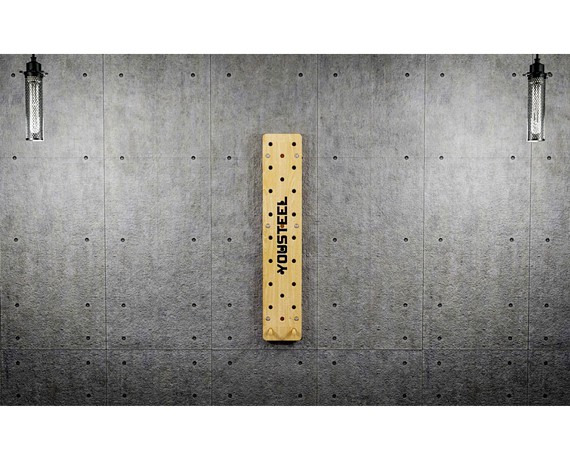 Пегборд бренда YouSteel является простым инструментом для развития ловкости и силы рук. Оригиналом этого снаряда является Стена Коркина. Пегборд имеет простую конструкцию в виде деревянного щита, по всей поверхности которого высверлены отверстия. Внизу щита имеется пара ручек.