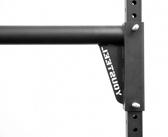 При необходимости стойка YOKE бренда YouSteel может использоваться, как обычная стойка для штанги. Для этого на нее необходимо установить все аксессуары, предназначенные для функциональной рамы, такие как страховочные упоры, брусья и крюки.