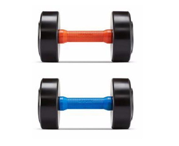 - Гантели с хромированной рукояткой и красным/синим/оранжевым/желтым/белым логотипом.